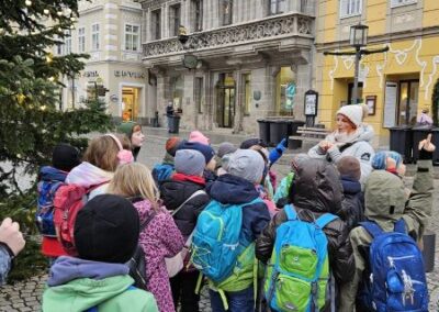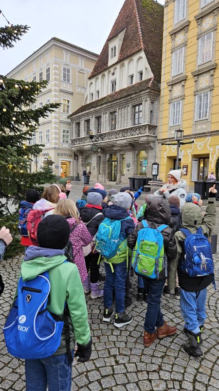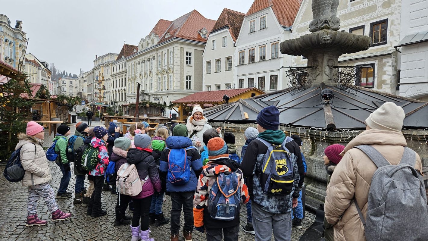 In der Vorweihnachtszeit besuchten unsere 3. Klassen die Christkindlstadt Steyr. Am Programm stand eine spannende Stadtführung, bei der die Schülerinnen und Schüler ihr umfangreiches Wissen beeindruckend unter Beweis stellten. Die Stadtführerin zeigte sich begeistert von der Aufmerksamkeit, dem Interesse und dem großen Vorwissen unserer Kinder – als Anerkennung vergab sie sogar eine 1+ im Sachunterricht an alle.